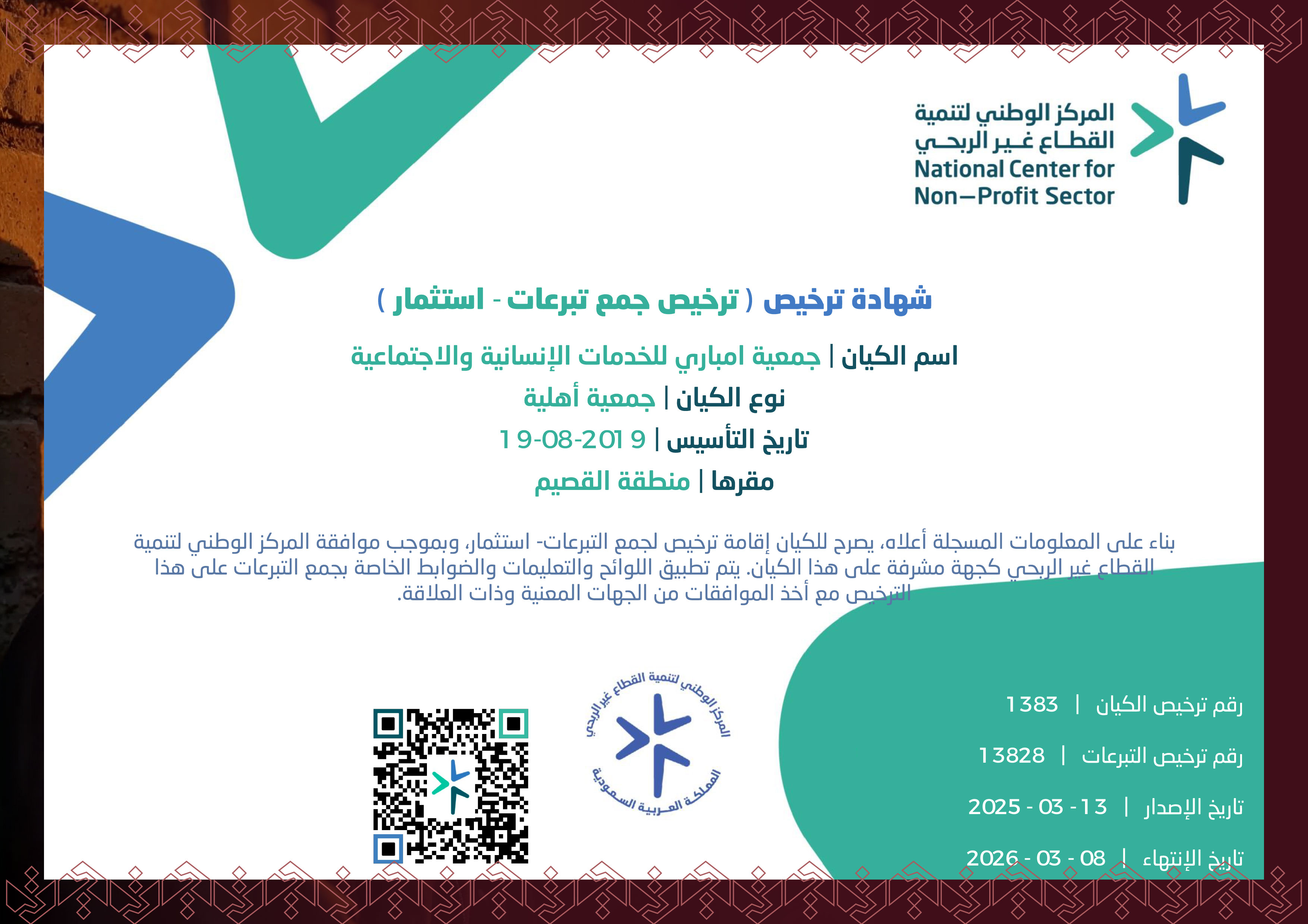 خلّك دايمًا من أهل الخير، وخلّ العطاء طبع فيك، يمكن بـ 45 ريال تفرّج كربة عن محتاج، والله يفرّج عنك كُرب الدنيا والآخرة." مشروع الصك الخيري" هو جسر يوصل عطاك للي ينتظرون الرحمة، يتيم يلقى أمل، فقير يحس بالأمان، وطفل يتعلم ويبني له مستقبل أحسن.لا تشيل هم المبلغ، بـ 45 ريال بس، تقدر تصنع فرق كبير، وتكسب أجر عظيم، ويمكن تكون سبب في إنك ترافق النبي ﷺ بالجنة.